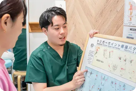 トップ施術者によるマンツーマン指導もあり。自費施術のスキルを無理なく身につけられます。