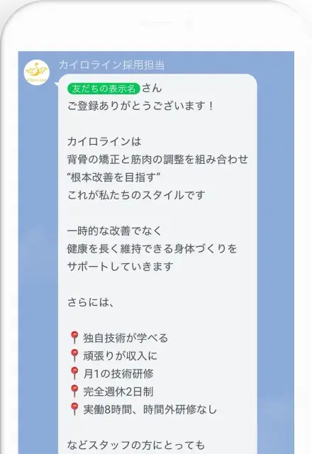 施術スタッフとして入社。理学療法士としての経験を活かしながら、カイロライン独自の技術と接客を学びます。